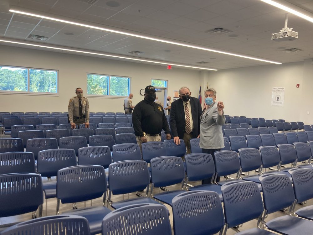 The parking lot of the county health and human services headquarters on Greenfield Street was nearly full before 8 a.m. Dozens of members of the public showed up to the meeting in opposition of the move. Everyone entered the meeting room, where mask-wearing was strictly enforced, through a security checkpoint manned by New Hanover County Sheriff’s Office deputies.