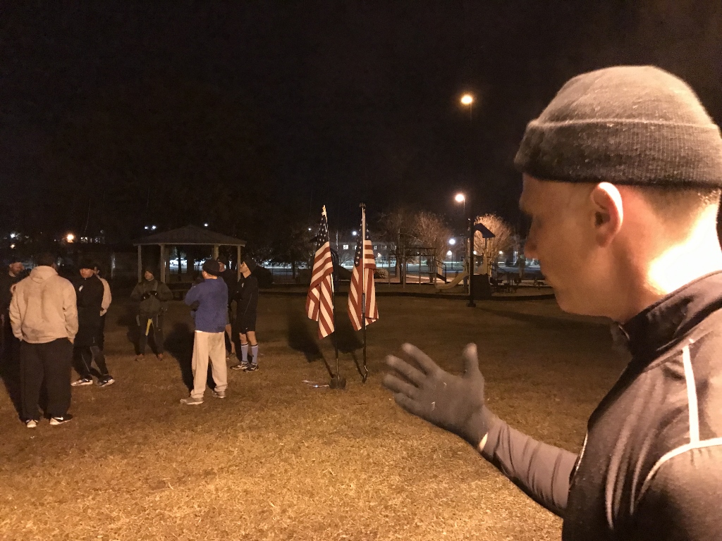 WILMINGTON – Two hours before dawn and just a few degrees above freezing, a dozen men gathered in Leland Municipal Park. In near-darkness, the men broke into a series of exercises, laughing, joking and cursing the cold.