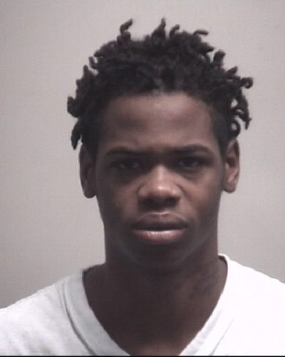 In the backseat of the car, officers observed a pistol grip pump shotgun. Witnesses also reported they saw the suspect toss a pistol in bushes nearby. A county K9 unit responded and was able to track the suspect east down the railroad tracks but ultimately couldn’t locate him. WPD’s bomb dog, Marian, located a stolen .22 caliber revolver from Pender County in the bushes in front of Grainger Supply on Covil Avenue.