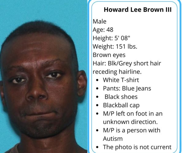 Brown was wearing a T-shirt, blue jeans, black shoes, and a baseball cap. The photograph released is not current.