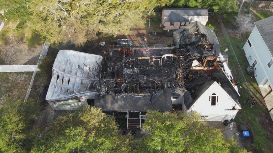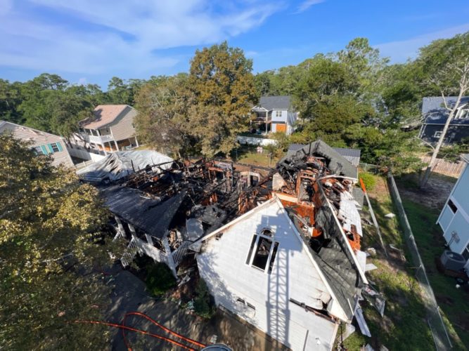 The source of the fire is still under investigation, according to a press release, but Oak Island FD said it is not considered suspicious at this time. Some small propane cylinders and medical oxygen tanks were destroyed in the fire, leading to “explosion sounds” as reported by neighbors, but these appear to be a result of the fire and not the cause.