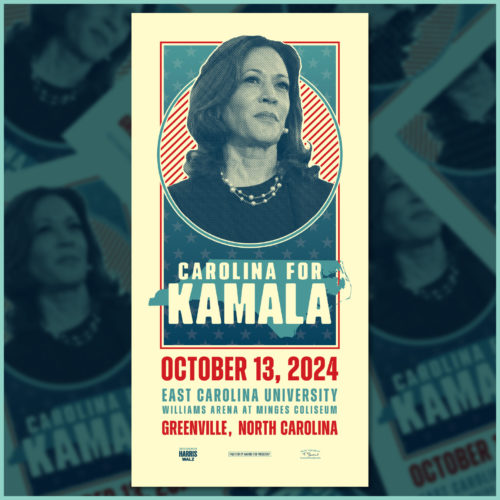 Mid-October, the artist was commissioned by the state’s Democratic Party to do an official poster for a Kamala Harris rally. It was hosted in Greenville at East Carolina University.