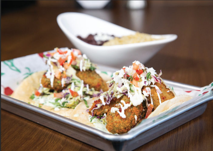Avocado fries, cabbage mix, cilantro cream, pico de gallo