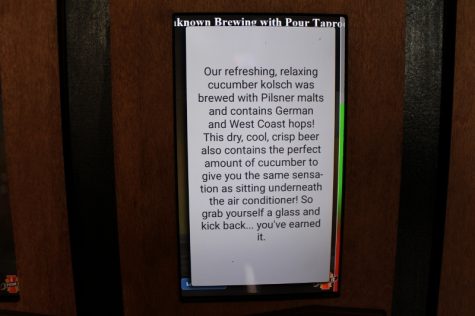 On the ground floor, 42 taps are arranged from light ciders to dark stouts, with sours, Belgians and IPAs in between. A screen above the tap includes information about the beer, including International Bitterness Units (IBU), alcohol by volume (ABV), and the cost per ounce.