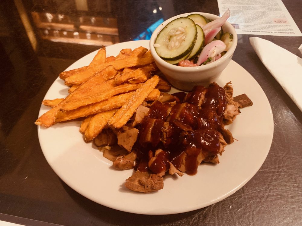 Still, for Service Manager Sam Sumner and Kitchen Manager Dustin Sullivan, getting jackfruit even into the same ballpark as Carolina barbeque was no easy feat (author’s note: the restaurant opted for western-NC style — no word yet if the tomato vs. vinegar vs. mustard debate raging across the Carolinas extends to vegan barbecue). Ultimately, Craig said, the struggle to zero in their vegan barbecue was fun — “we got to play with food, and make food we felt good about.”
