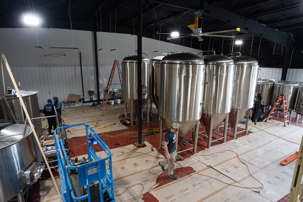 The original 7-barrel brewhouse inside Bill’s Front Porch will keep brewing, allowing both simultaneous operations to hit a total of 3,000 to 3,500 barrels per year once in full production, according to head brewer Jim Deaton. Last year the brewery produced around 1,000 barrels; he said the new brewhouse will be able to make the same amount of beer in one day as they currently make in a week.